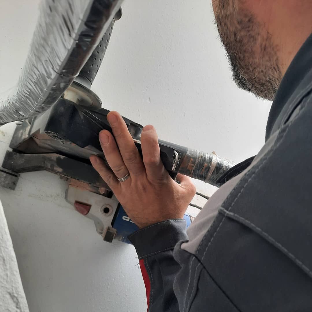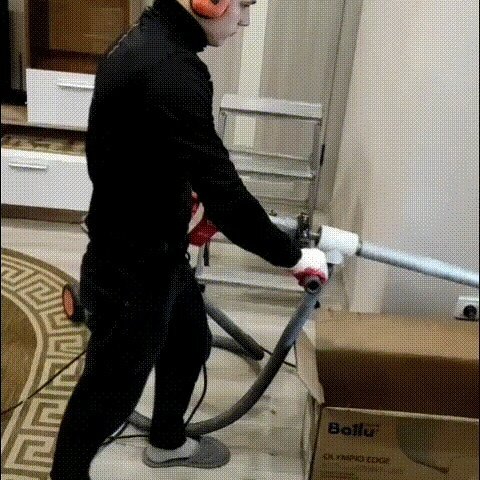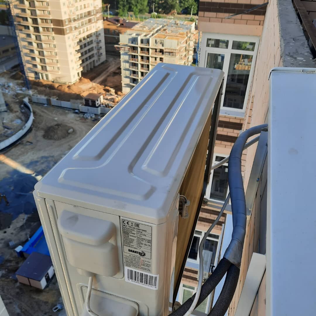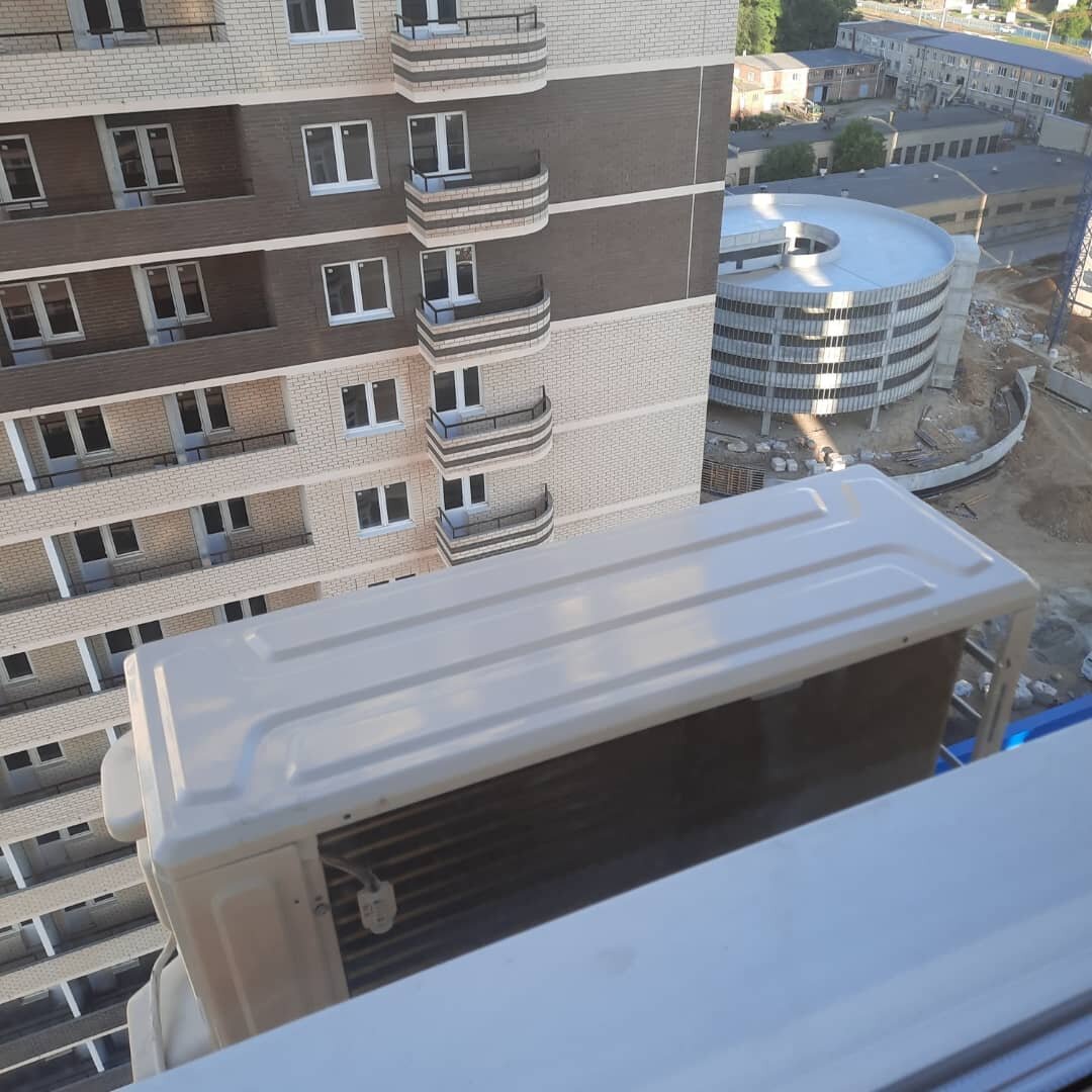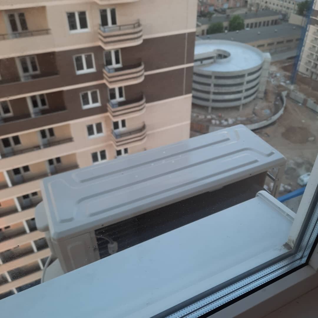 Несмотря на то, что я заранее прислал (как мне казалось) исчерпывающие фотографии, оказалось, что потенциальное место установки не подходит, т.к. там проходит сливная труба и монтажник Константин тут же предложил альтернативное решение и каким-то чудом закрепил наружный блок через другое узкое окно так, чтобы к блоку сохранялся доступ и его можно было спокойно обслуживать без помощи альпинистов. Все довольно оперативно, строго по инструкции и чисто!